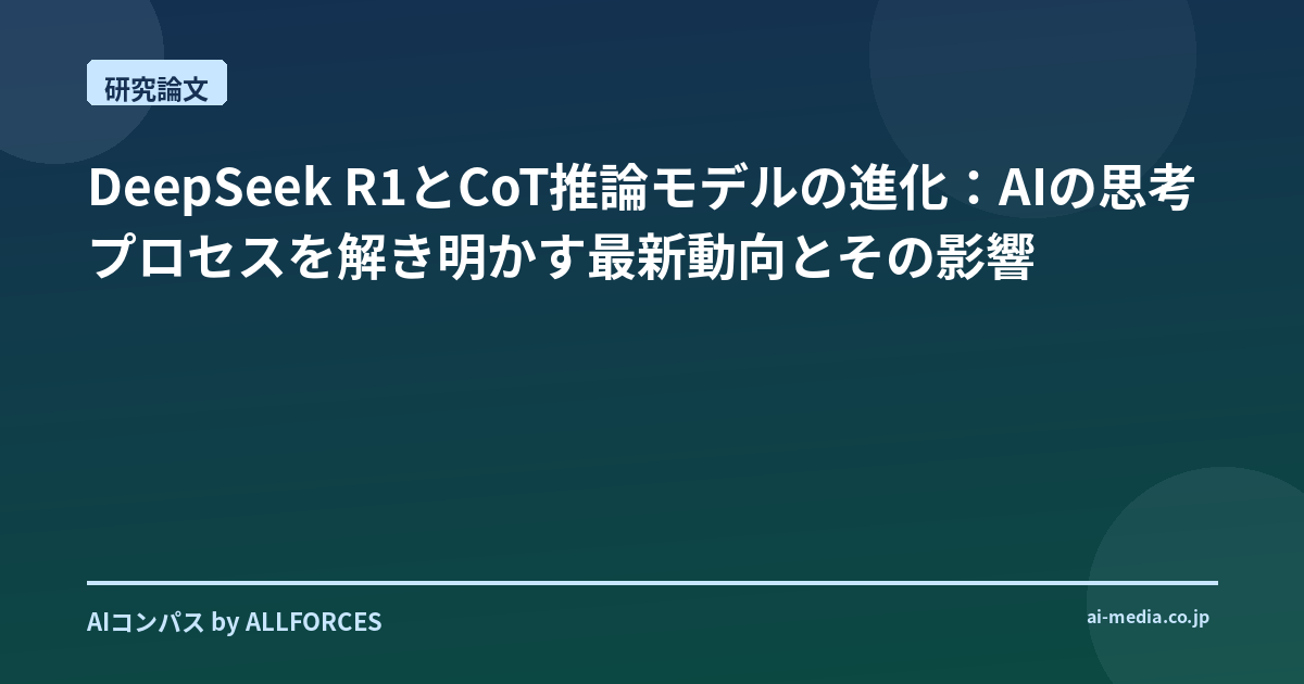 AI研究の最前線では、単に答えを出すだけでなく、「なぜその答えに至ったのか」という思考プロセスを明確にする技術が急速に発展しています。特に、Chain-of-Thought (CoT) 推論モデルの進化は目覚ましく、その中でもDeepSeek R1のようなモデルは、従来のAIの限界を押し広げ、実用化への期待を高めています。今回は、この「思考プロセスを明示するAI」の最新動向と、それが我々のビジネスや生活にどのような影響を与えうるのか、研究開発の現場からリアルにお伝えします。
