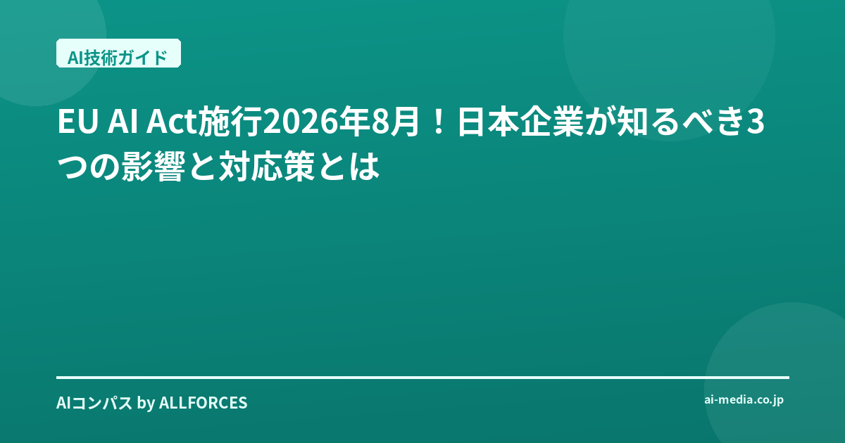 - EU AI Act完全施行は2026年8月!日本企業が知るべき影響とAI活用の現実解とは?