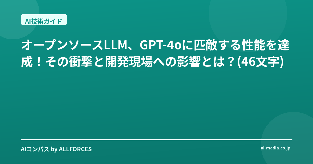 - オープンソースLLM、GPT-4oに匹敵する性能を中小企業が3倍活用する最新動向とは?