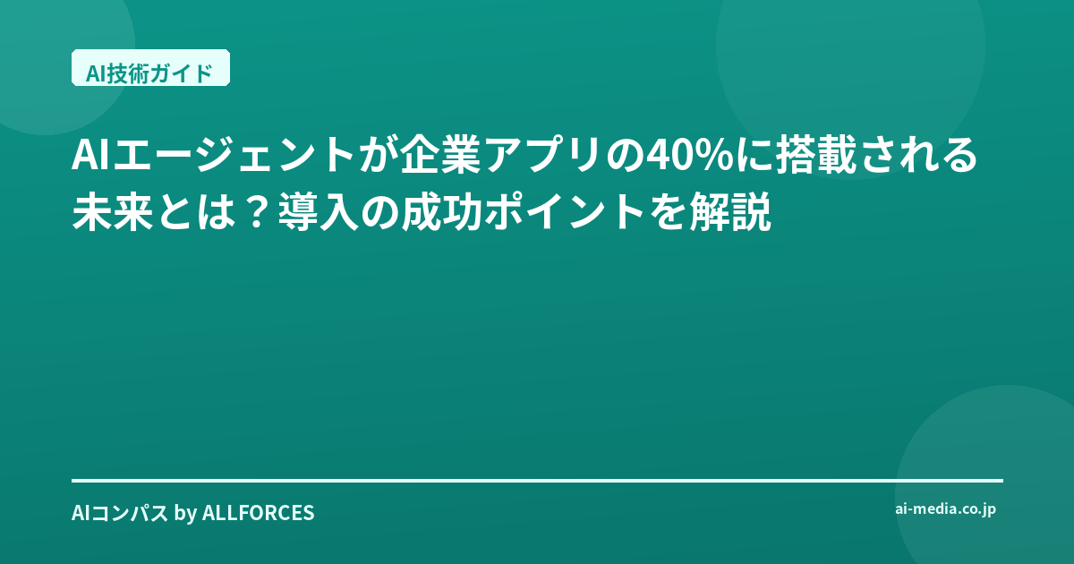 - AIエージェント、2026年に企業アプリの40%に搭載(AI技術ガイド)が変えるビジネスの未来