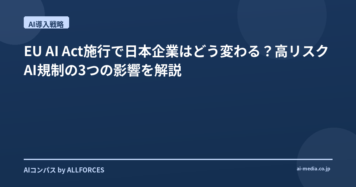 - EU AI Act完全施行は2026年8月!日本企業が知るべき影響とAI活用の現実解とは?