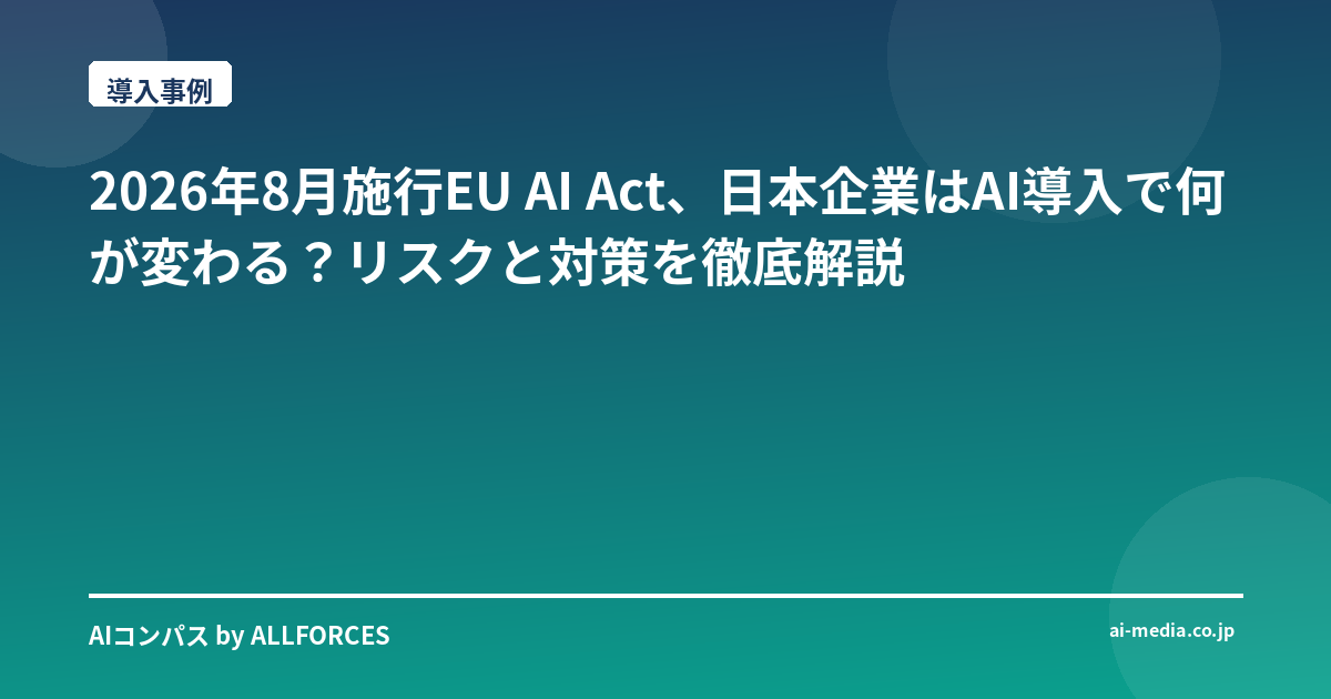 - EU AI Act施行2026年8月!日本企業が知るべきAI規制と対策の全貌とは