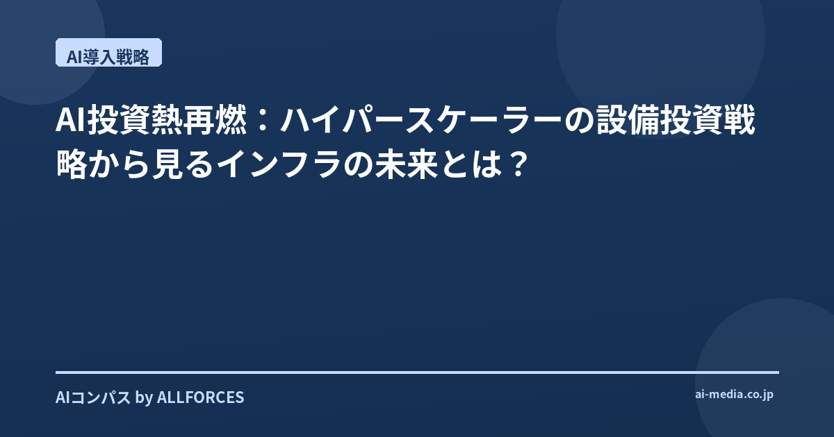 AI投資熱再燃:ハイパースケーラーの設備投資戦略から見るインフラの未来