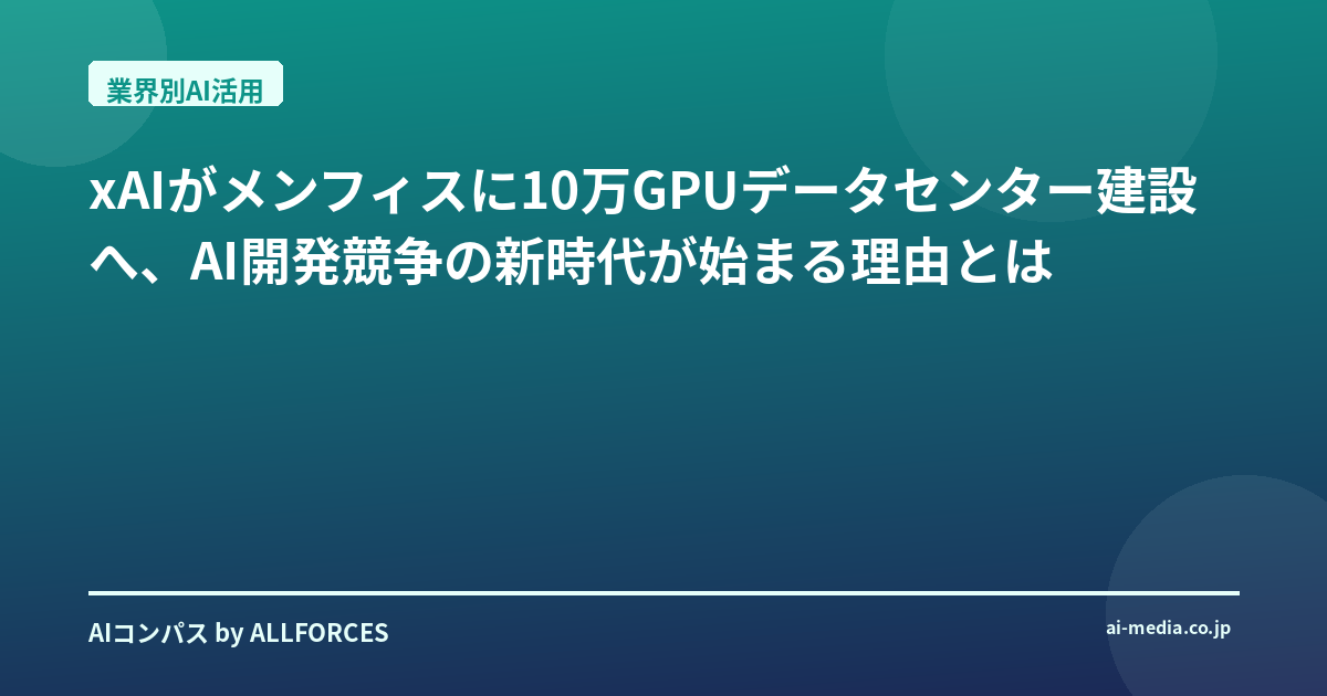 Elon Musk氏率いるxAIが、メンフィスに10万GPU規模のデータセンターを建設するというニュースは、AI開発競争の激化と、地域経済への影響という点で、非常に興味深い動きと言えます。私自身、これまで様々な業界でAI導入の現場を見てきましたが、こうした大規模インフラ投資がもたらすインパクトは計り知れません。今回は、xAIのこの戦略が、AI開発の未来と、地域経済にどのような影響を与えるのか、そして私たちビジネスリーダーやエンジニアが、この変化にどう向き合っていくべきか、深掘りしていきましょう。