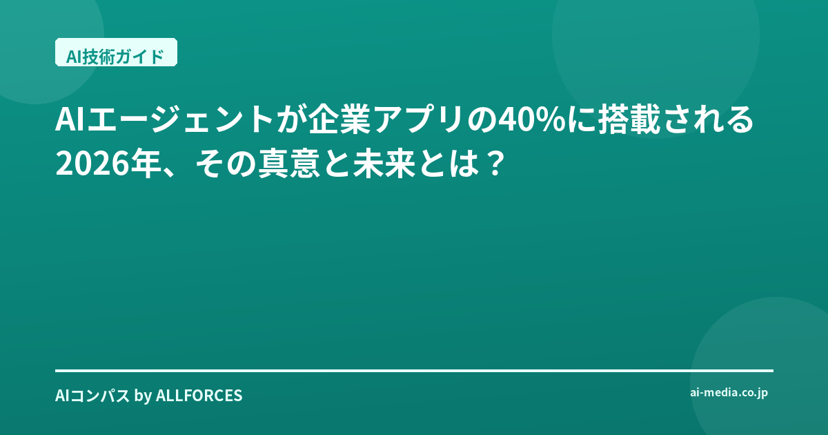 AI技術の進化は目覚ましいものがありますが、中でも「AIエージェント」の動向は、ビジネスの現場で注目すべき変化をもたらしています。Gartnerは、2026年までに企業アプリケーションの40%がAIエージェントを搭載するという予測を発表しました。この数字を聞いて、「それはすごい」と感じる一方で、「具体的に何が変わるのか」「うちの会社ではどう活用できるのか」といった疑問をお持ちの方もいらっしゃるのではないでしょうか。