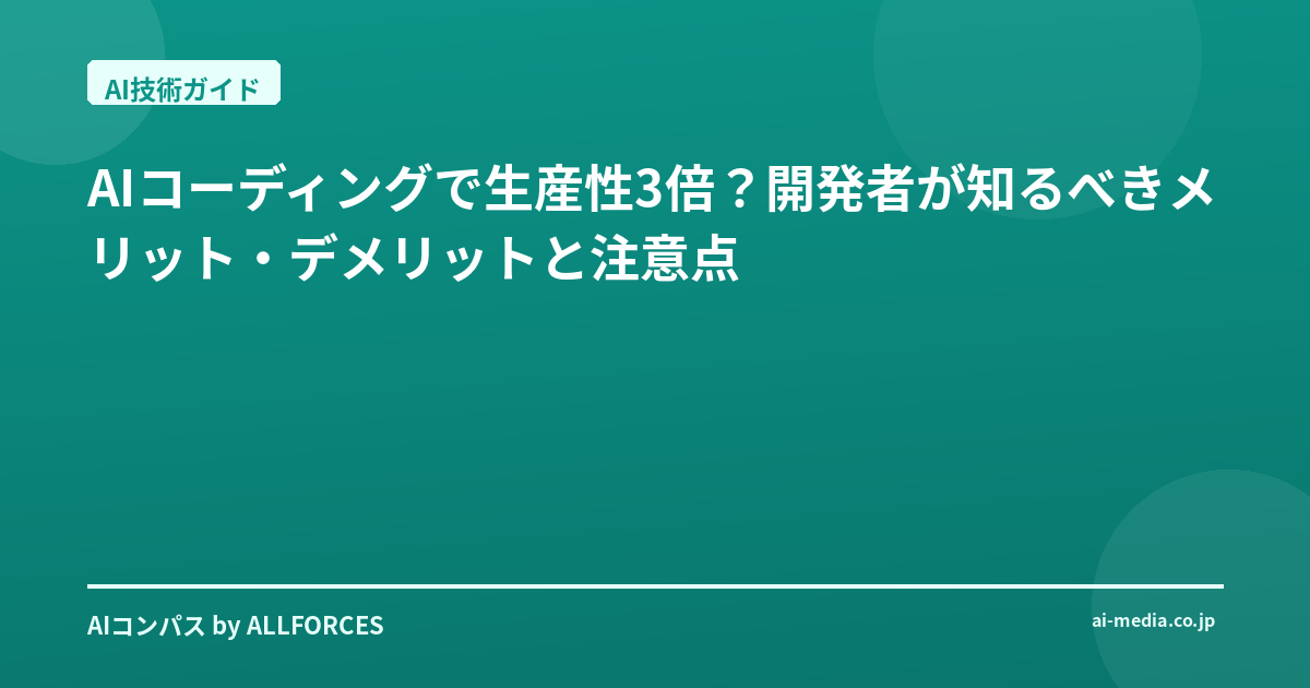 - AIコーディングツールで開発効率3倍!最新動向と現場の変化を徹底解説