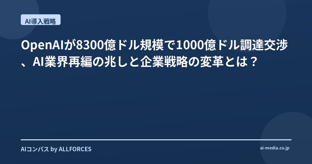 某生成AI企業巨額資金調達の裏側:AIエコシステム再編の兆しと、企業が取るべき戦略