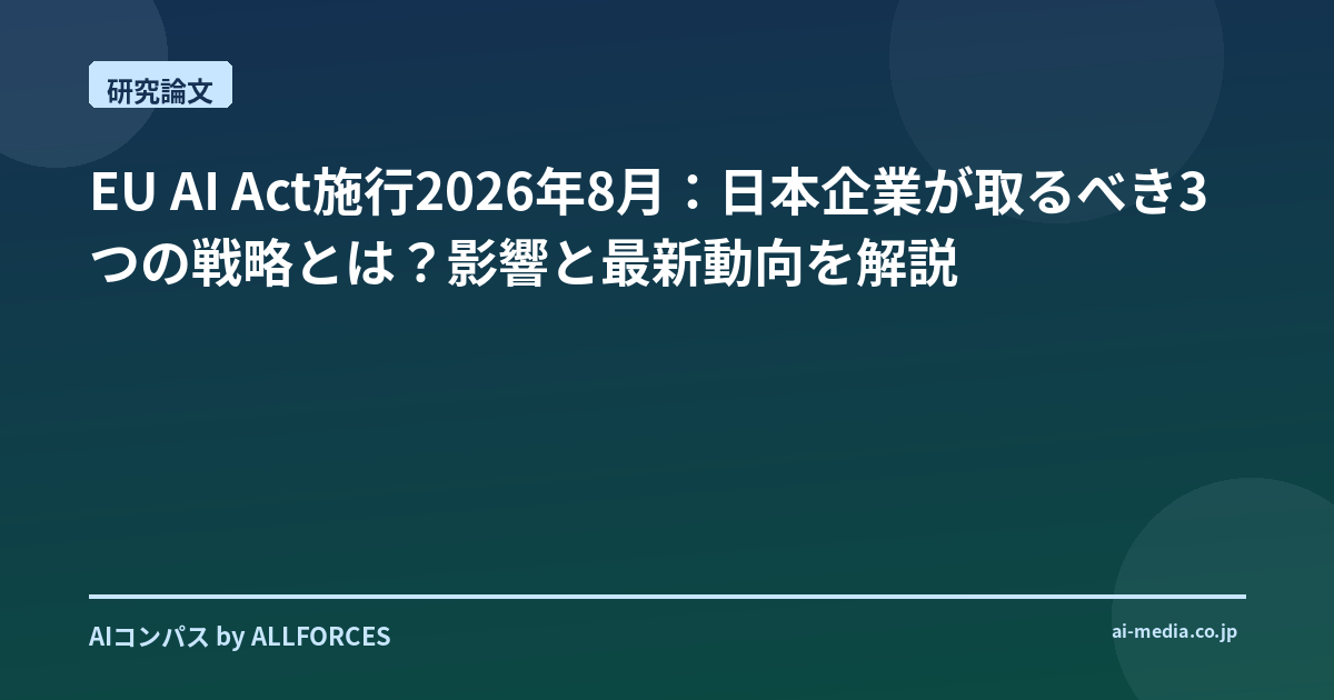 - EU AI Act完全施行は2026年8月!日本企業が知るべき影響とAI活用の現実解とは?