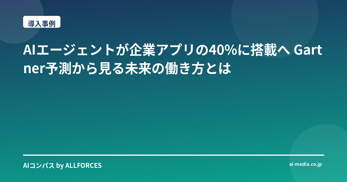 - AIエージェントが企業アプリの40%に搭載へ Gartner予測の真意と業務効率化の鍵とは