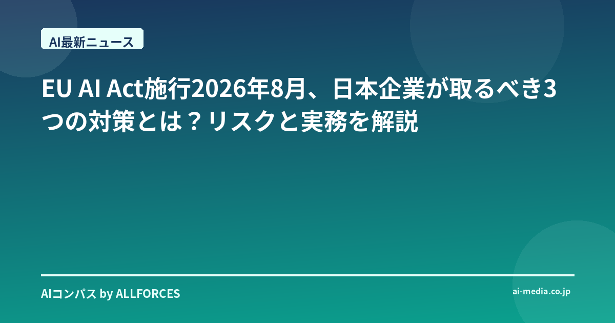 - EU AI Act施行2026年8月、日本企業が取るべき3つのコンプライアンス戦略とは?