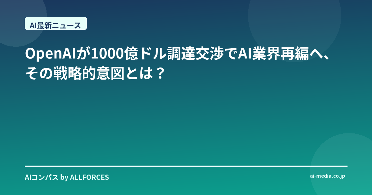 某生成AI企業、1000億ドル調達交渉の裏側:AI業界再編の可能性と戦略的意図を深掘りする