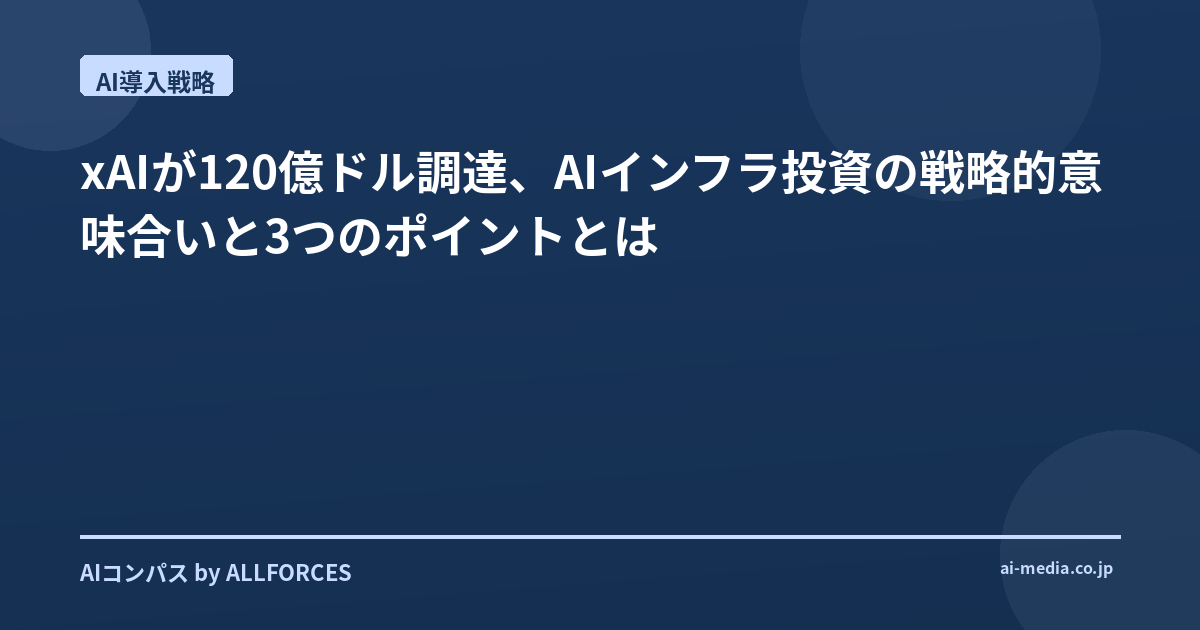 イーロン・マスク氏率いるxAIが、史上最大級となる120億ドルの資金調達に成功したというニュースは、AI業界に大きな衝撃を与えました。メンフィスでの10万GPU規模のデータセンター建設という具体的な計画も報じられており、その野心的な規模に目を見張るばかりです。このxAIの動きは、単なる一企業の資金調達にとどまらず、AIインフラへの巨額投資が不可欠となっている現代において、企業が取るべき戦略を考える上で、非常に示唆に富んでいます。