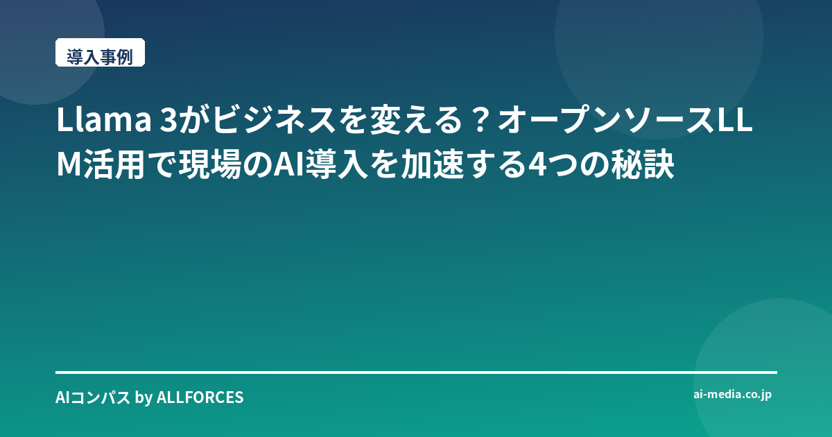 オープンソースLLM、ビジネス活用の新潮流:Llama 3が切り拓く、現場の「あったらいいな」