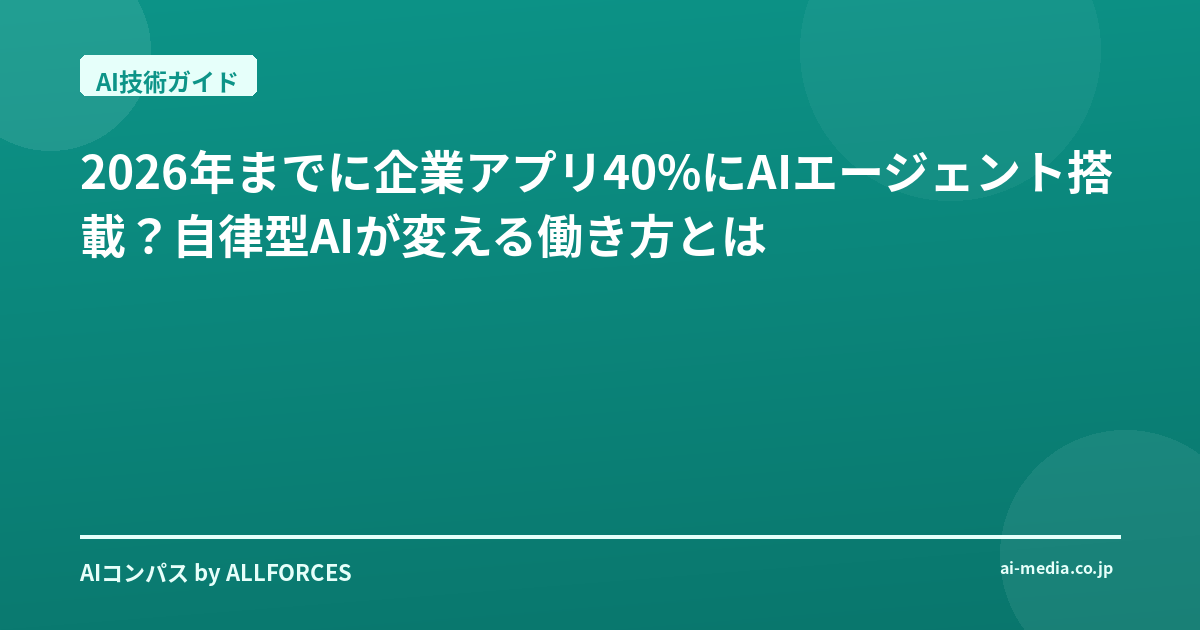 皆さん、こんにちは。AI実装プロジェクトに日々向き合っている技術者です。最近、AIエージェントという言葉を耳にする機会が増えたのではないでしょうか。Gartnerによると、2026年には企業アプリケーションの40%にAIエージェントが搭載されると予測されています。これは、単なるバズワードではなく、私たちの働き方やビジネスのあり方を大きく変える可能性を秘めた技術だと、私は考えています。