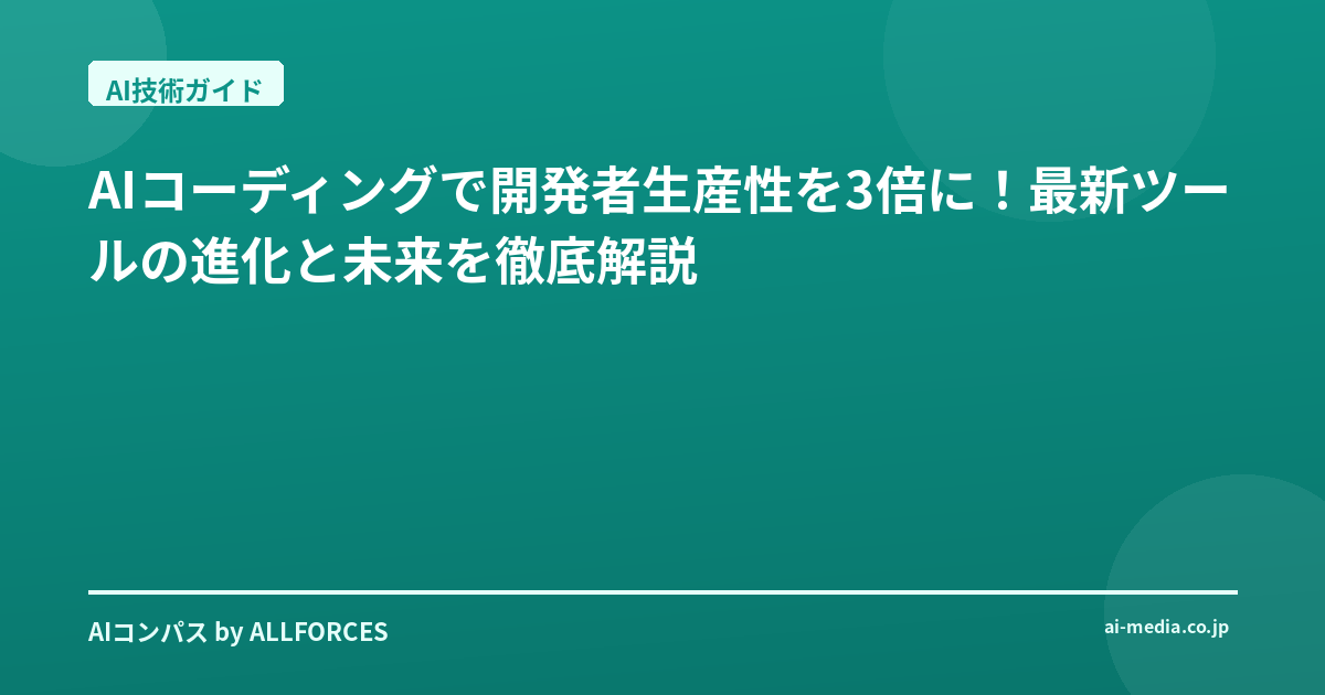 - AIコーディングツールで開発効率3倍!最新動向と現場の変化を徹底解説