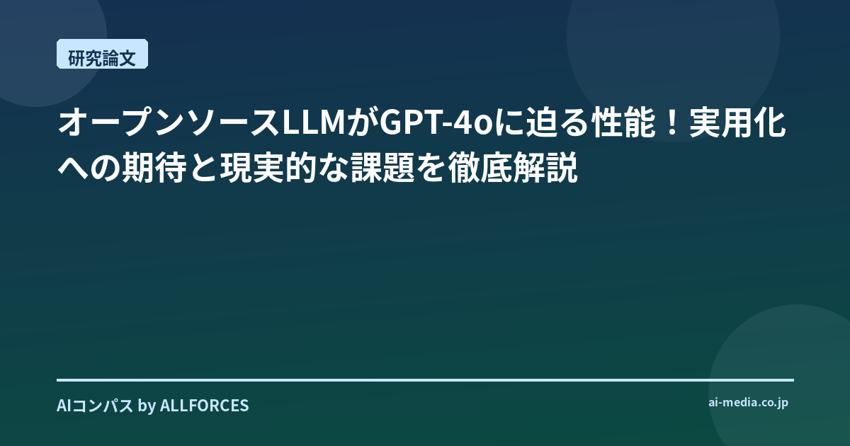 - 2026年GPT-4oに迫る!オープンソースLLMの最新性能と企業導入戦略とはが変えるビジネスの未来