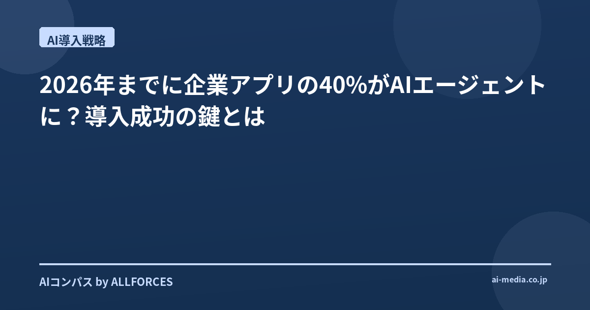 - AIエージェントが2026年までに企業アプリの40%を占拠する未来の導入ロードマップとは