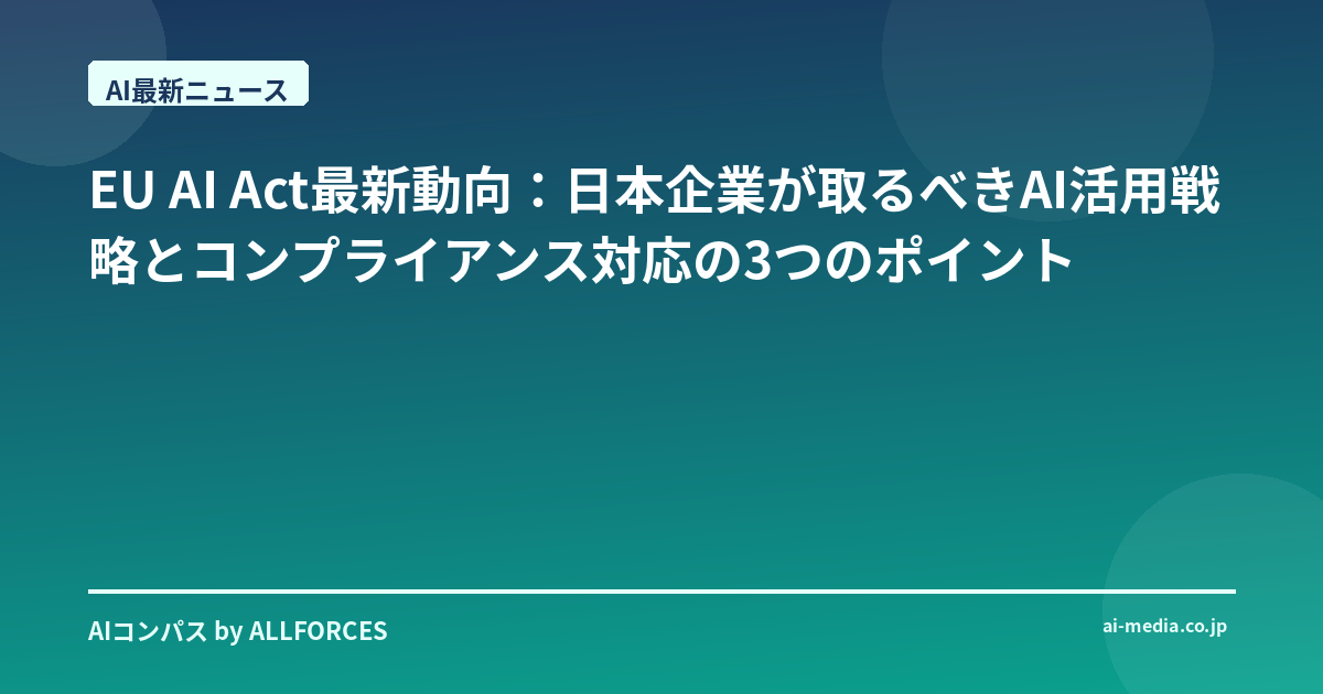- EU AI法、2026年8月施行。日本企業はどう備えるべきか?による業務効率化と競争力強化