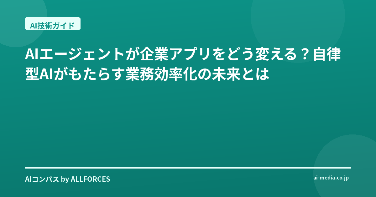 これらの要因が組み合わさることで、AIエージェントは単なる「夢物語」ではなく、現実のビジネス課題を解決するための強力なツールとして、急速に企業アプリケーションに浸透し始めています。