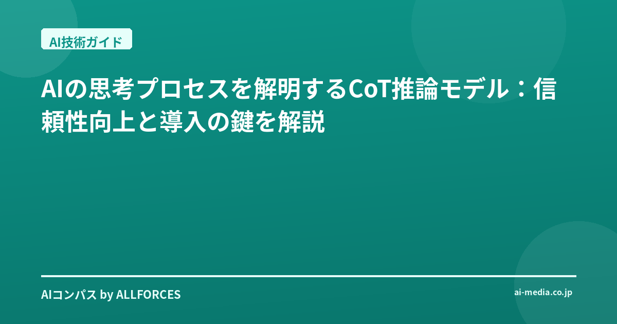 AIがまるで人間のように「考える」時代が到来しました。しかし、その「思考」はブラックボックス化しがちで、なぜその結論に至ったのか、私たち人間には理解しにくいことがあります。そんな中、AIの推論プロセスを明示し、その信頼性を飛躍的に向上させる可能性を秘めた技術として注目されているのが「CoT(Chain-of-Thought)推論モデル」です。今回は、AI実装の現場でこの技術に触れてきた経験から、CoTの仕組みとその重要性、そして導入を検討する上で知っておきたいポイントを、エンジニアや経営層の皆さんと共有したいと思います。