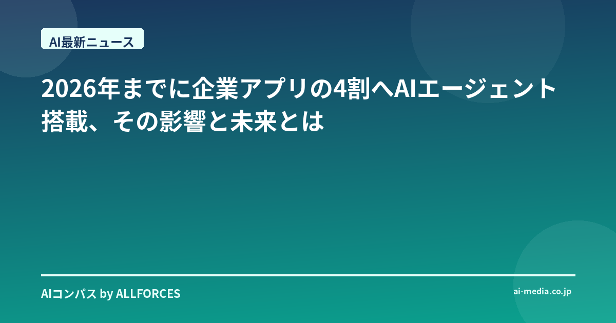 AIエージェントが、2026年までに企業アプリケーションの4割に搭載される?この数字、正直驚きませんか。私自身、AI開発の現場で日々進化を肌で感じていますが、この予測はAIエージェントのポテンシャルを改めて認識させられます。今回は、この「AIエージェント」というキーワードに焦点を当て、その最新動向と市場予測を深掘りし、私たちのビジネスにどのような変化をもたらすのか、現場の視点から分析してみたいと思います。