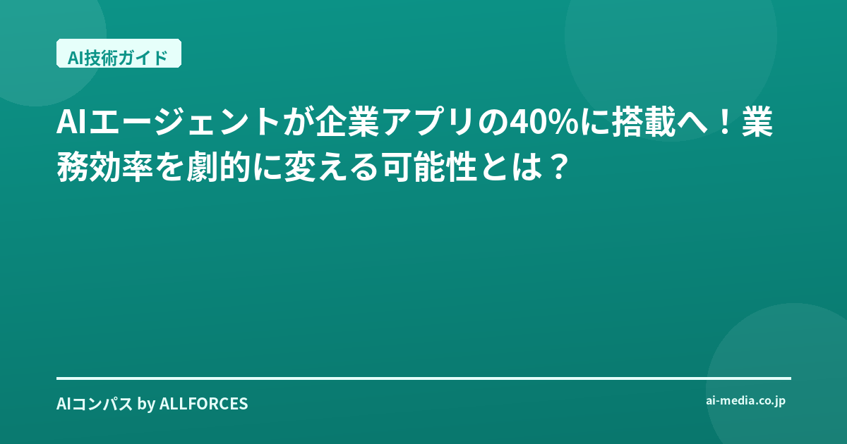 Gartnerによると、2026年には企業アプリケーションの40%がAIエージェントを搭載する見通しだと言われています。これは、AIエージェントが単なる技術トレンドではなく、ビジネスの現場で標準的な機能として浸透していくことを示唆しています。