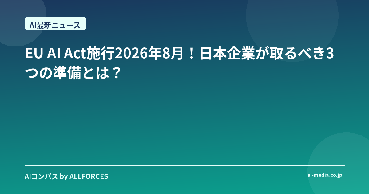 - EU AI法、2026年8月施行。日本企業はどう備えるべきか?による業務効率化と競争力強化