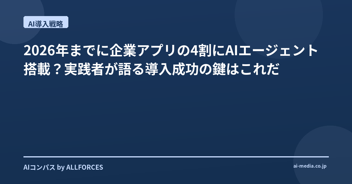 - AIエージェントが2026年までに企業アプリの40%を占拠する理由とは?導入ロードマップも解説