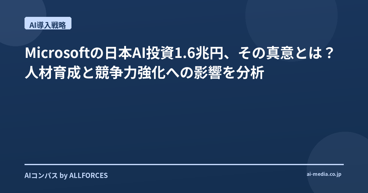 Microsoftの1.6兆円投資:国内AI人材育成と産業競争力強化への影響を徹底分析