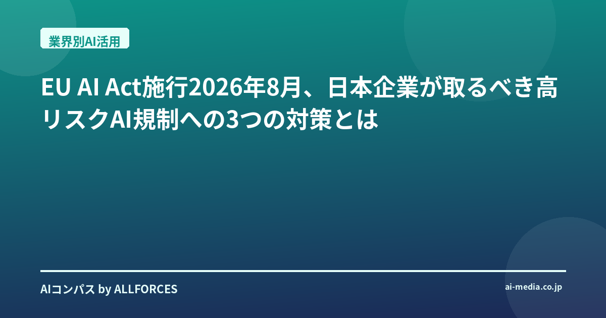 - EU AI Act施行2026年8月!日本企業が取るべき3つの対策とは