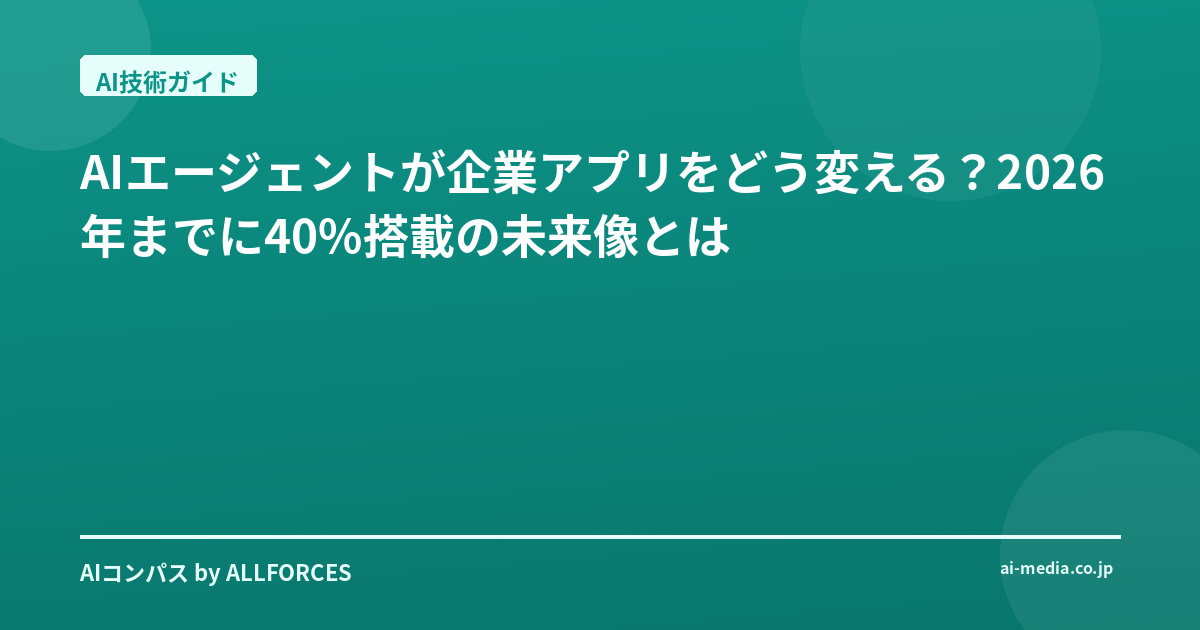 AIエージェントは、企業アプリケーションの世界に静かに、しかし確実に浸透し始めています。単なる自動化ツールを超え、自律的にタスクを実行し、ビジネスプロセスを革新する可能性を秘めたこの技術は、2026年には企業アプリの40%に搭載されると予測されています。本稿では、AIエージェントの技術的側面、市場の背景、そして実務への応用可能性について、AI実装プロジェクトの経験を基に、現場の視点から分かりやすく解説します。