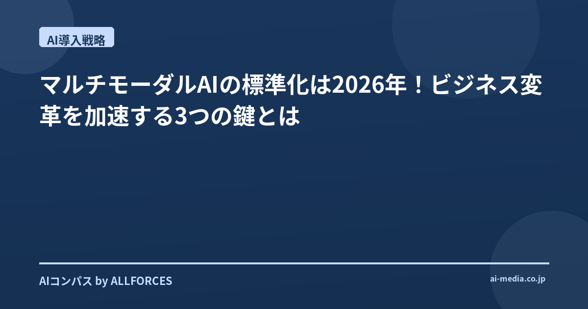 - 要点は、多様なデータ形式を統合する能力と、それに基づいた高度な推論能力こそが、マルチモーダルAIの差別化要因です。
