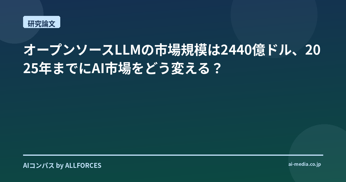 オープンソースLLMは、AI研究開発の民主化を推進する画期的な技術であり、その性能は急速に向上し、学術研究への貢献が期待されています。 2025年時点でAI市場規模が2440億ドルに達すると予測されているように、AI分野への投資は加速しています。本稿では、オープンソースLLMの「市場背景」「技術構造」「実務への示唆」の3点から、この革新的な技術の可能性を探ります。