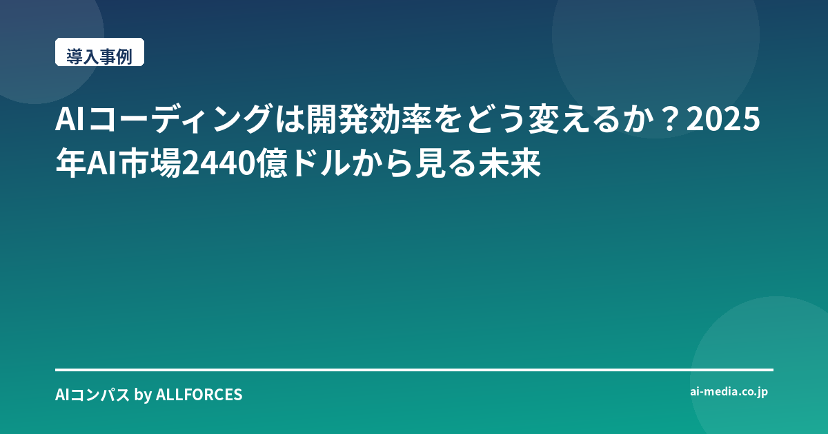 AIコーディングは、ソフトウェア開発プロセスを根本から変革する技術であり、開発者の生産性を飛躍的に向上させる可能性を秘めています。2025年時点でAI市場規模が2440億ドルに達すると予測されているように、AI技術の進化は加速しています。本稿では、AIコーディングツールの具体的な導入事例、開発者と企業にもたらす変革、そして成功要因と今後の展望の3点から整理します。